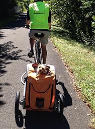 With user feedback and personal intrigue, we continue to expand the outdoors experience with the inclusion of items such as dog strollers, bike baskets, the Buddy hands-free dog leash connector, and Cycleciser dog bike exerciser. ** Can be used as bike trailer with added adapter (not included) ** Features and Measurements (from website) ::-air tire 8.5 inch swivel wheel-single centered larger wheel for optimal agility