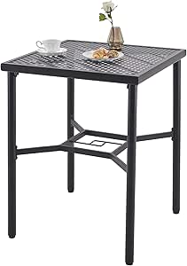 Outdoor The standard bar height table is 41 to 43 and can be paired with bar height stools, generally 29 to 32. Used as a high bar table or a dining table, even an umbrella supporter with a hole in the middle for putting your umbrella.