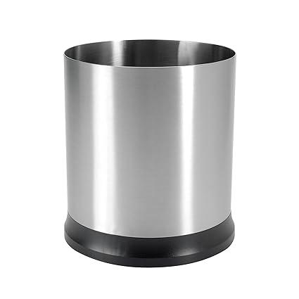 A contoured bottom keeps tools upright, even when the Holder isn't full. Thanks to its unique elliptical shape, our Utensil Holder fits in narrow areas or flush against a wall. The kitchen utensil caddy is crafted from brushed stainless steel and accented with black plastic at the bottom. $22.99.