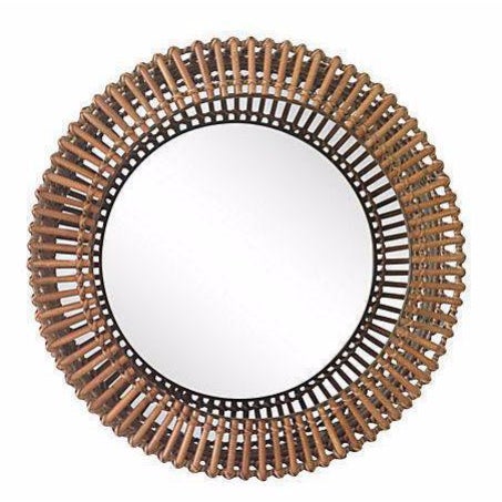This accent piece features a round glass mirror panel with rattan-wrapped brown frame. Decor to emulate a tropical retreat. Decorating with wall mirrors adds instant sophistication and depth to any room. No adjustments to prior purchases. NATURAL MATERIALS: Frame Made From Natural Willow Twigs Please check the coupon details.